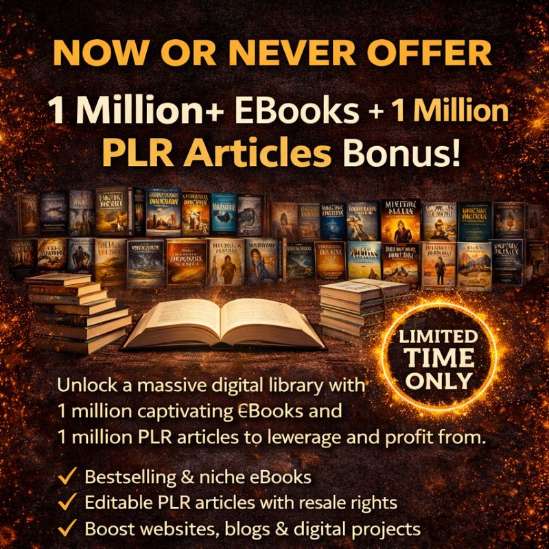 Unlock an incredible digital library with this exclusive eBook bundle featuring over 1 million titles across a wide range of genres and topics. Whether you’re a passionate reader, an online entrepreneur, or a lifelong learner, this collection gives you instant access to a world of knowledge and opportunity.