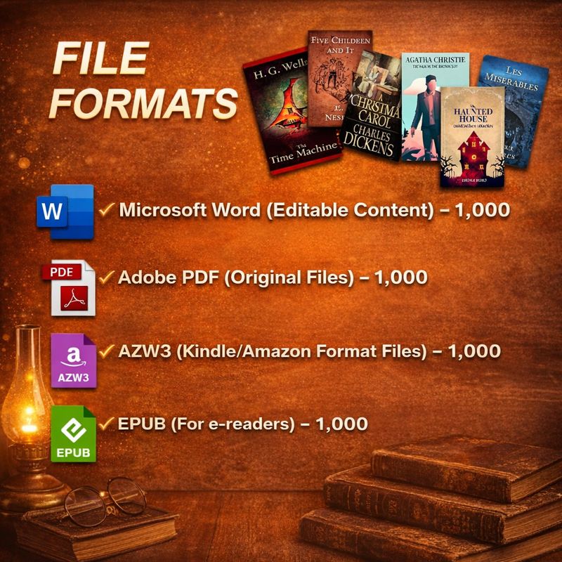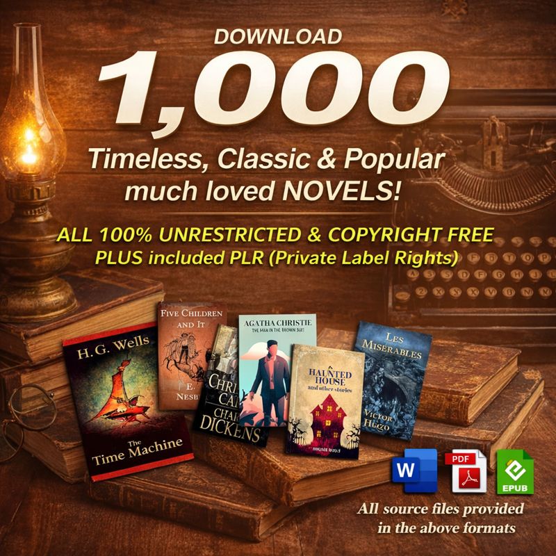 Discover an exclusive digital collection of 1,000 timeless classic and world-famous novels, covering a wide range of popular genres including Romance, Mystery, Fantasy, Science Fiction, Thriller, Horror, Young Adult, Inspirational, Religious, Memoir, and many more.