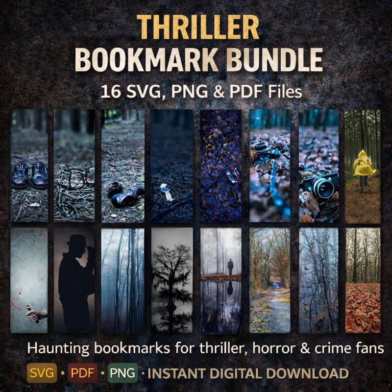 This digital bundle includes unique, handcrafted bookmark designs in SVG, PDF, and PNG formats—perfect for fans of thriller, horror, and crime books. Ideal for marking unforgettable quotes and chilling moments in your favorite dark reads.